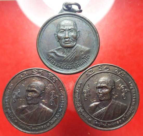 เหรียญหลวงพ่อสังข์ วัดบ้านใหม่กลอ นครราชสีมา เนื้อทองแดง (มีจาร) 3 เหรียญ เคาะเดียวแดง |