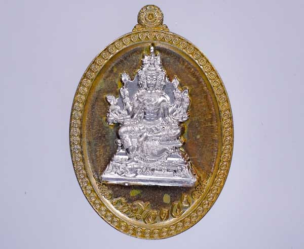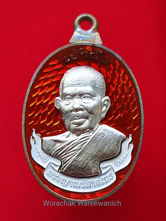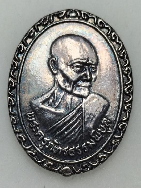 เหรียญเซียนแป๊ะ ลพ.ทอง เนื้อเงินลงยาไม่ตัดปีก9รอบหลังเรียบ มีจารหลวงพ่อทอง หมายเลข29 |