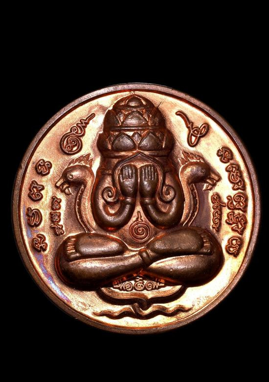 -วัดใจเคาะเดียวแดง- เหรียญพระนาคปรกพระมงคลมุจจลินท์ พระอาจารย์ วัน อุตตโม จ.สกลนคร ปี 2515 ทองแดงรมดำ |