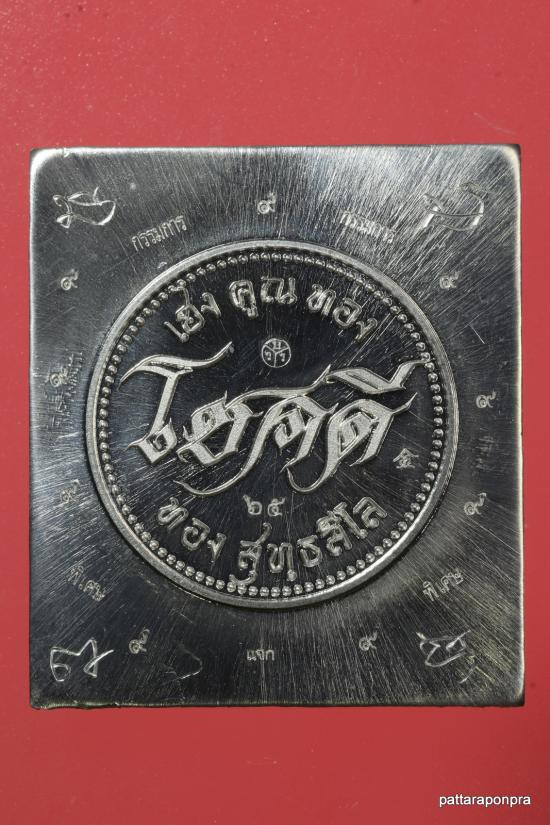 เหรียญสี่เหลี่ยม หลวงพ่อทอง รุ่นโชคดี ปี 2565 เนื้อตะกั่ว กรรมการ มีจาร หมายเลข 65 |