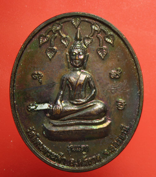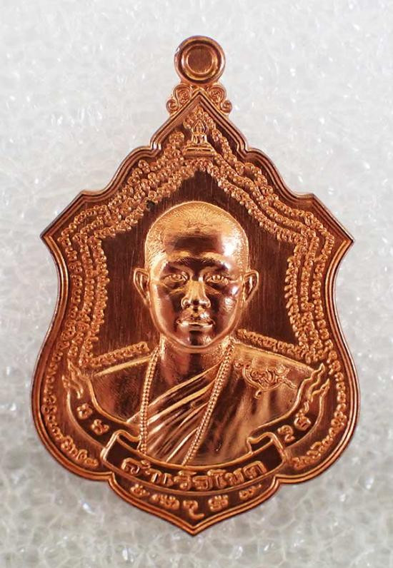 เหรียญหลวงพ่อทอง รุ่นลาภยศ ปี 2557 เนื้อกะใหล่ทอง มีจารหลวงพ่อ หมายเลข 2980 |