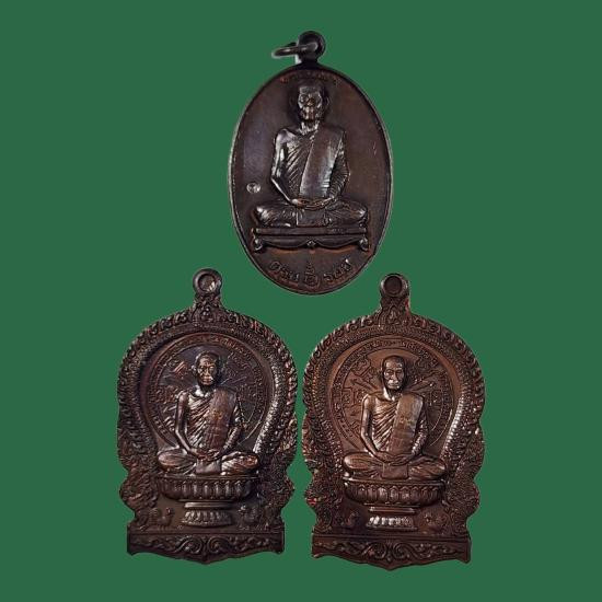 เหรียญสามบัวบานแดนอีสาน หลวงปู่ศิลา สิริจันโท พระอาจารย์ต้อม และพระอาจารย์สุริยันต์ เนื้อฝาบาตร ชีลเดิม ลุ้นเลขสวย |