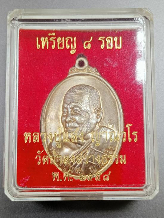 เหรียญหลวงปู่เฮง วัดบ้านด่านช่องจอม เนื้อเงิน กล่องเดิมครับ |
