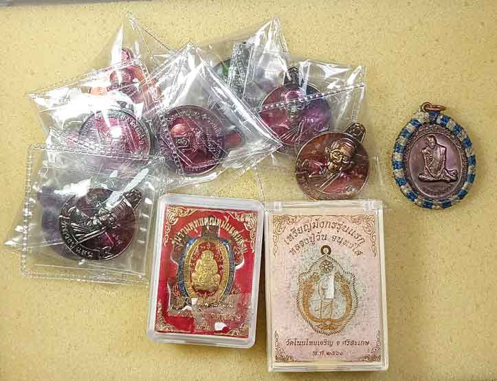 เหรียญปลดหนี้ พระอาจารย์สุริยันต์ วัดวังป่าเย็น จ.มหาสารคาม ปี57 เนื้อดีบุก สร้างน้อย |