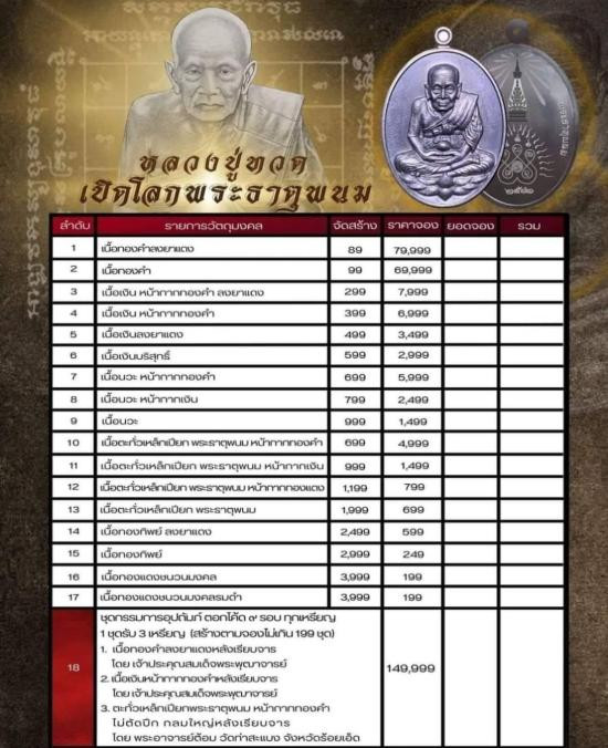 | ลำดับที่ | รูปภาพ | ชื่อพระเครื่อง | ผู้ตั้งประมูล | ผู้เข้าชม | ราคาขณะนี้ | ผู้ให้ราคา สูงสุดขณะนี้ | เวลาปิดประมูล | ราคาชนะประมูล | ผู้ชนะประมูล |