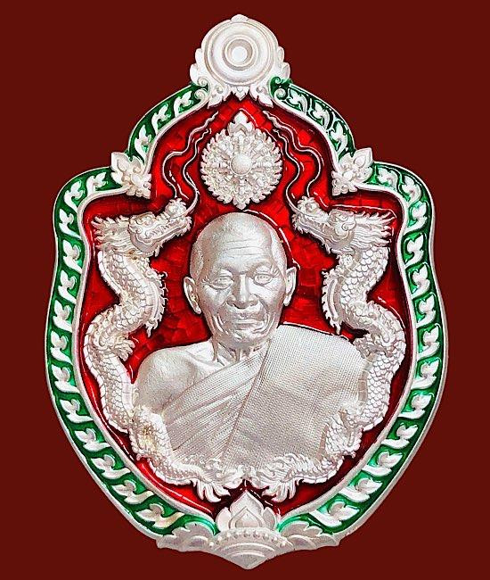 หลวงปู่มหาศิลา อายุวัฒนะมงคล81 มังกรคู่ เนื้อเงินลงยาแดง จมูก100 เลข143= 8 กล่องเดิม คัดสวยๆ |