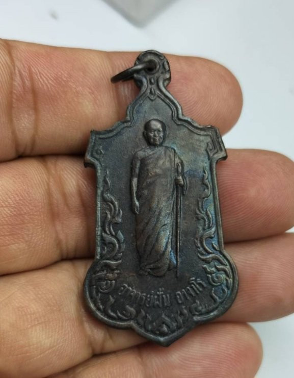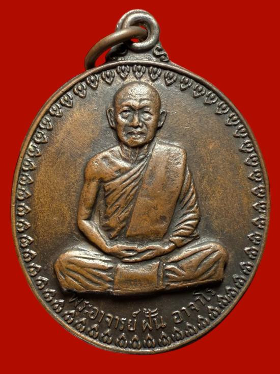 เหรียญหลวงปู่ฝั้น อาจาโร จ.ส.อ.สุนทร คมนามูล สร้างถวายท่านอาจารย์ ปี2518 เนื้อทองแดง |
