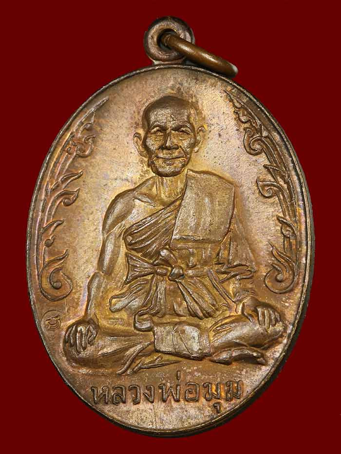 วัดใจ เหรียญหลวงพ่อมุม วัดปราสาทเยอร์ พิมพ์นักกล้าม เนื้อทองแดง ปี 2517 สภาพสวยผิวเดิม |
