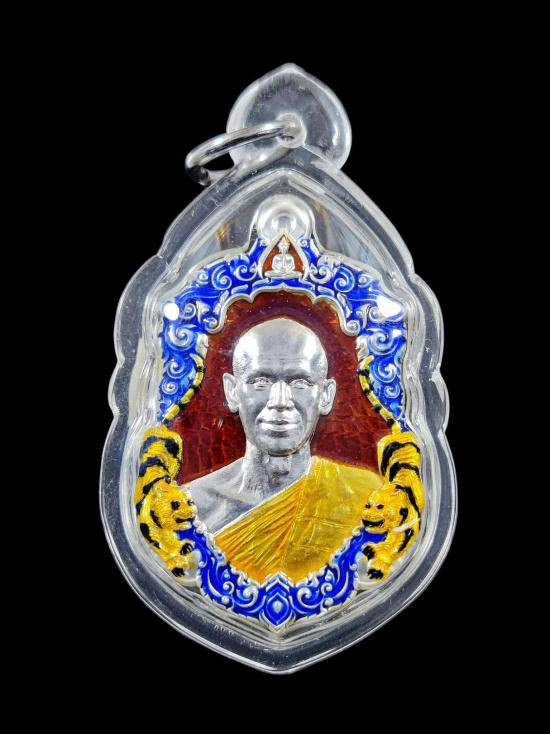 เคาะเดียว พระอาจารย์ต้อม วัดท่าสะแบง จ.ร้อยเอ็ด รุ่นรวยนะ9ดี พิมพ์เสือคู่บารมี (รายการชุดลังทองคำ เนื้อเงินลงยาสามสี หลังชนวน ) No.16 พร้อมกล่องเดิม |