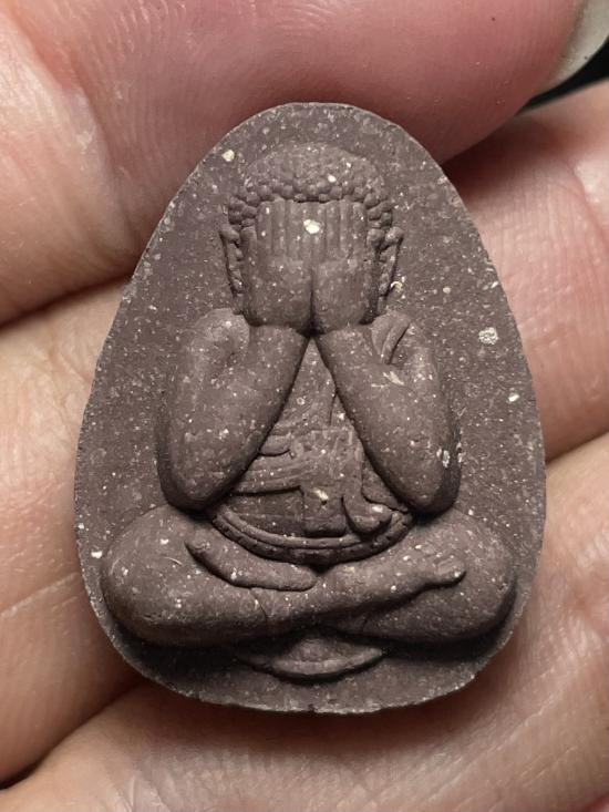 พระผงนั่งตั่ง5รอบ พระอาจารย์นก วัดเขาบังเหย เนื้อน้ำพี้ฝังตะกรุด3ดอก จีวรและสายสิญ No.72 |