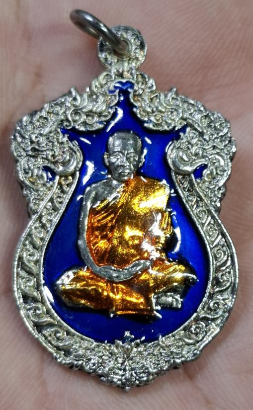 เหรียญเสมาหลวงพ่อทอง รุ่นทองสิบทิศ ปี 2563 เนื้อเงินลงยาสีธงชาติหน้าทองคำ หมายเลข 43 |