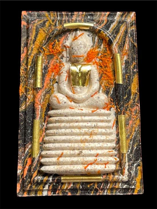 พระผงนั่งเมฆเลื่อนยศ หลวงปู่มหาศิลา สิริจันโท จารหมึกทองด้านหน้าและหลัง เนื้อขาวผงพุทธคุณ |