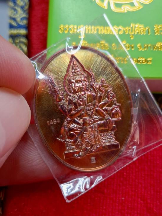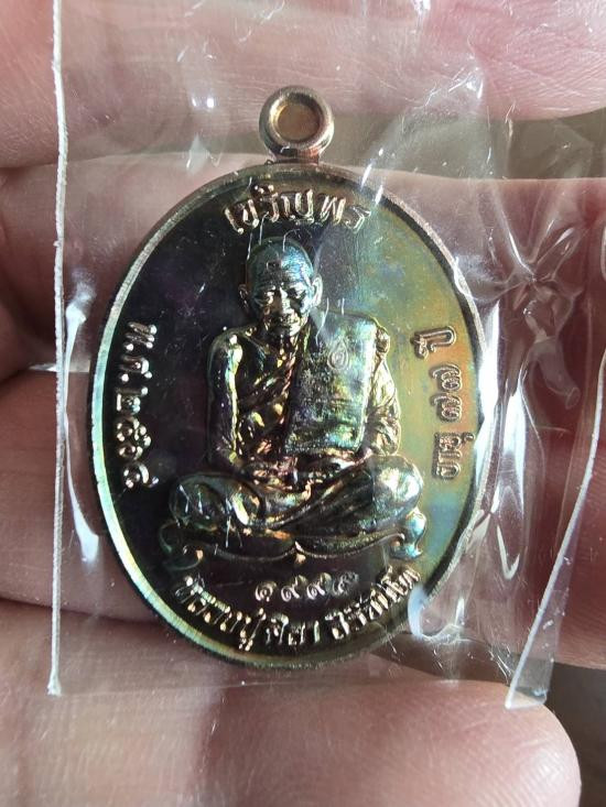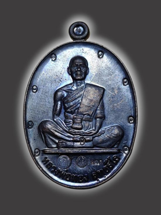 เหรียญหลวงพ่อทอง รุ่นเปิดโลกมหาเศรษฐี ปี 2563 เนื้อตะกั่วไม่ตัดปีกหลังเรียบมีจาร หมายเลข 127 |