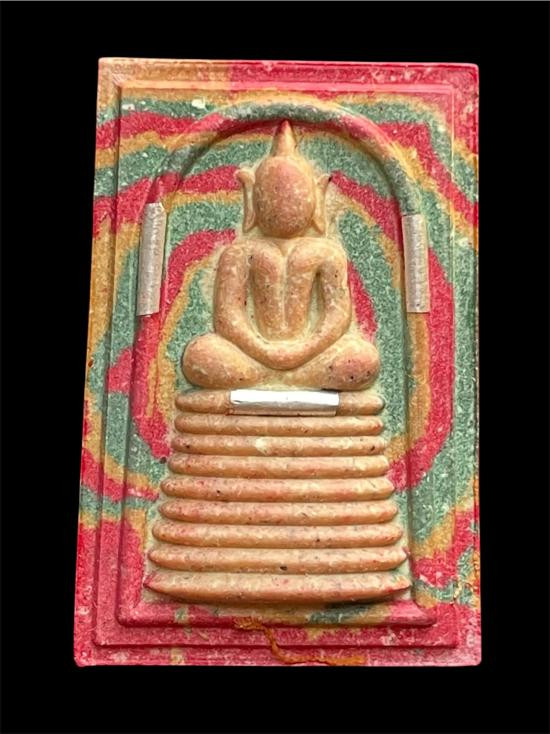 ..พระสมเด็จ 9 ชั้น รุ่น จินดามณีมนต์พระกาฬ หลวงปู่ศิลา วัดโพธิ์ศรีสะอาด จ.กาฬสินธุ์ เนื้อว่านไพลดำ ติดจีวรเต็มแผ่น หลังเพชร 7 สี No.94 พร้อมกล่องเดิมครับ |