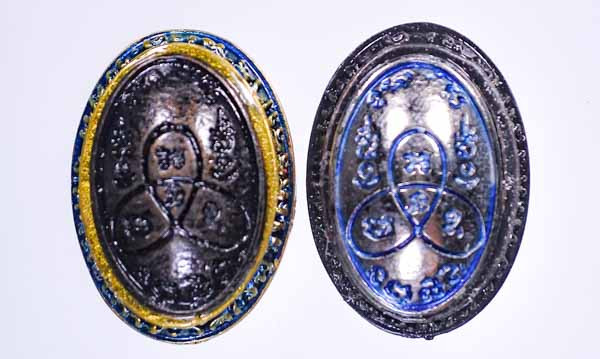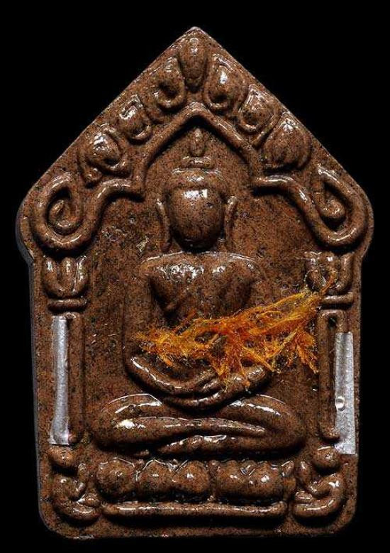 พระของขวัญ พิมพ์ใบโพธิ์ เนื้อว่านดอกพยอม รุ่นแรก ปี๒๕๒๐ หลวงปู่ชา สุภัทฺโท วัดหนองป่าพง อ.วารินชำราบ จ.อุบลราชธานี เนื้อว่านดอกพยอมผสมมวลสารว่าน 108 ชนิด อธิษฐานจิตโดย พระโพธิญาณเถระ |
