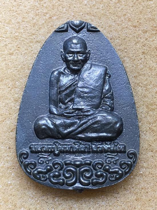สมเด็จแร่หินดำหลวงปู่ทองมา ถาวโร รุ่นเกินร้อย ปี2527 เลี่ยมกรอบเงินสั่งทำอย่างสวย |