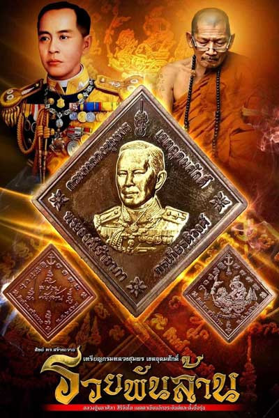 เหรียญ รุ่น เจ้าสัวพันล้าน (หลวงปู่จื่อ วัดเขาตาเงาะ จ.ชัยภูมิ) รายการที่ 38 เนื้อกะไหล่นาค ฝังพลอยแดง หมายเลข 2296 กล่องเดิม (จัดสร้างโดย บอย ท่าพระจันทร์) |