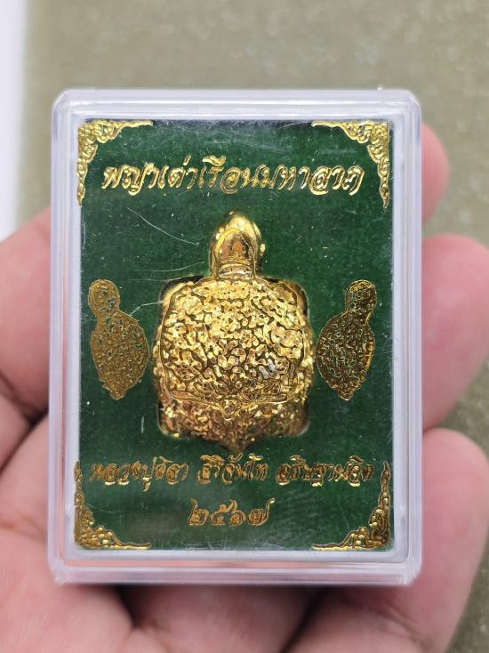พญาเต่าเรือนมหาลาภ หลวงปู่ศิลา หลวงปู่มหาศิลา สิริจันโท วัดพระธาตุหมื่นหิน จ.กาฬสินธุ์ (ปลุกเสกพิธีเดียวกับเหนือดวง 2) เนื้อกะไหล่ทอง พิมพ์เล็ก เลข ๓๖๖๐ มีกล่องเดิม |