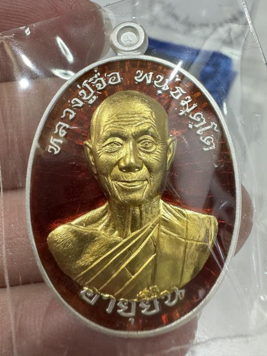 หลวงปู่จื่อ วัดเขาตาเงาะฯ เหรียญอายุยืน81ปี ปี2567 เนื้อเงิน ลงยาสีแดง หน้ากากทองคำ no.27 มีกล่อง |