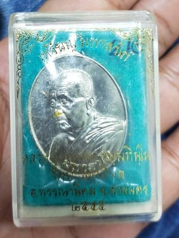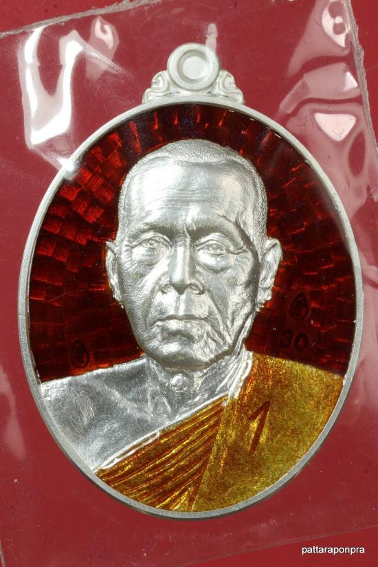 หลวงปู่จื่อ วัดเขาตาเงาะฯ เหรียญนั่งพานรวยพันล้าน ปี2564 เนื้อเงิน ลงยา no.45 มีกล่อง |