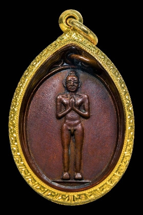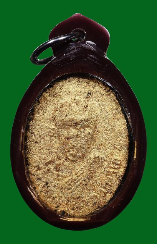 พระเสด็จกลับเนื้อดำปิดทอง หลวงปู่สุภา วัดสีสุภาราม ภูเก็ต ปี06 พิมพ์รูปเหมือนหลังใบไม้ ปิดทอง เลี่ยมเก่า |