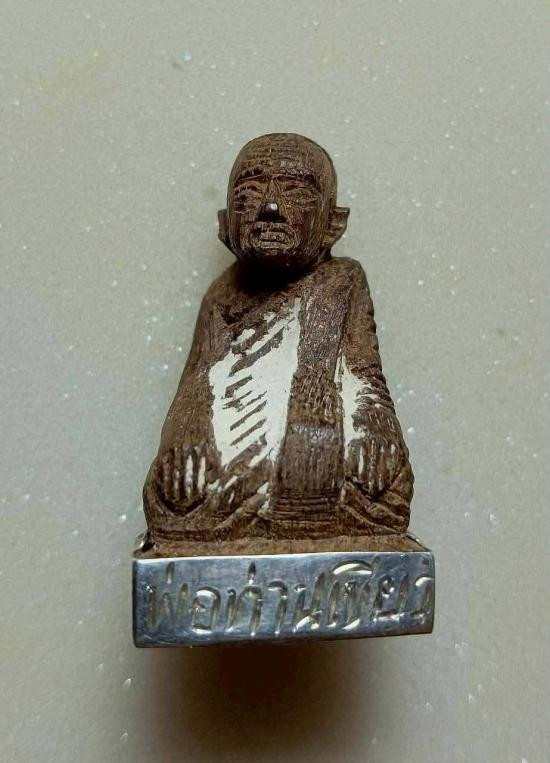 หลวงพ่อเขียว วัดห้วยเงาะ เนื้อไม้โบถส์แกะ หุ้มเงินจารมีเจิม |