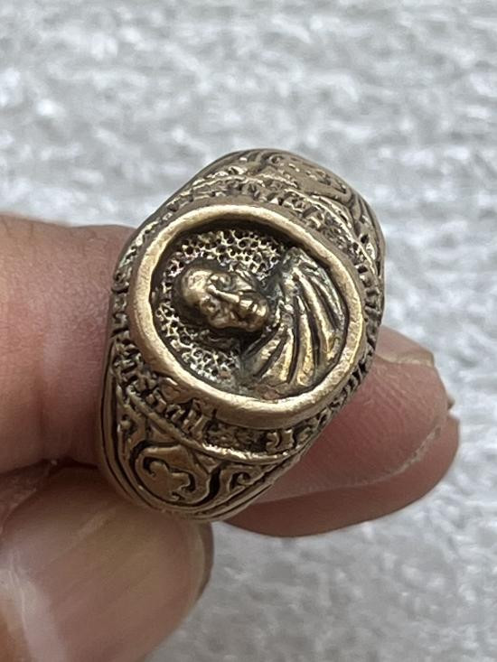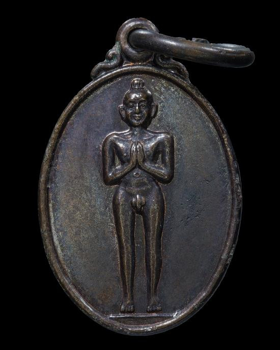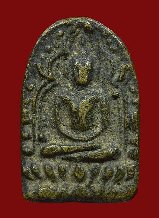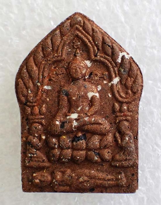 พระปรกใบมะขาม หลัง ภปร. พ่อท่านคลิ้งปลุกเสก ปี ๒๕๓๐ เนื้อทองแดง (เนื้อธาตุกายสิทธิ์) ตอกโค๊ตด้านหลัง |