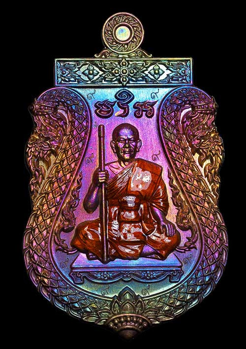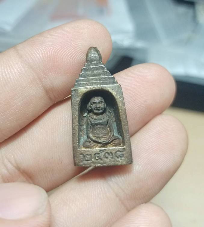 ปรกใบมะขาม รุ่นแรก พ่อท่านคลิ้ง วัดถลุงทอง ผสมโลหะบ้านเชียง |
