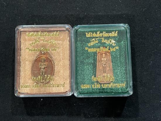 วัดใจ เหรียญเลื่อนพิมพ์ใหญ่ ปาฎิหาริย์ไอ้ไข่ มั่งทรัพย์ วัดเสมาเมือง จ.นครศรีธรรมราช เนื้ออัลปาก้าลงยา 2 เหรียญ เลข850 เลข701 |
