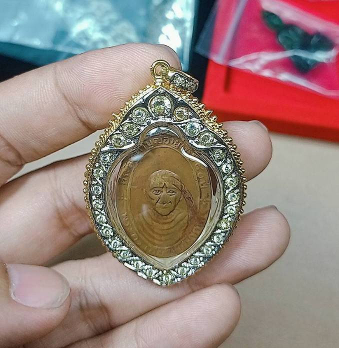 หัวนะโมพ่อท่านคล้ายยุคแรกมีน้ำทองขนาดเล็ก เลี่ยมทองแท้ ชั่งรวม 1.37กรัม เปอร์เซนทอง 76% สภาพสวยติดโบว์แดงงานเซียร์รังสิตให้แล้วเหมาะกับเด็กและผู้หญิงมาก |