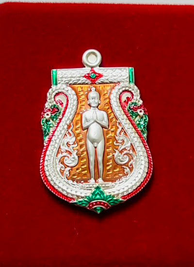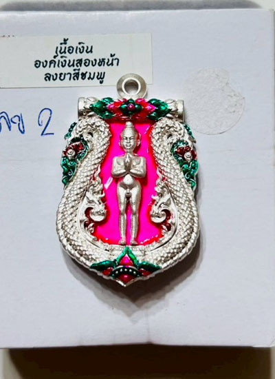 วัดใจ เหรียญ12 นักษัตรศรีวิชัย เหนือดวง วัดเสมาเมือง จ.นครศรีธรรมราช เนื้อเงินลงยาสีชมพู เลข2 |