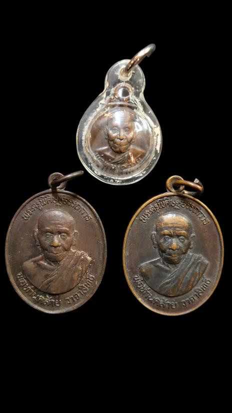 **100.**(3เหรียญ) 1เหรียญกลมเล็กหลังเจดีย์พ่อท่านคล้าย วัดสวนขัน ปี 2505 + 2เหรียญพ่อท่านคล้ายหลังพระบรมธาตุ จ.นครศรีธรรมราช ปี 36 |