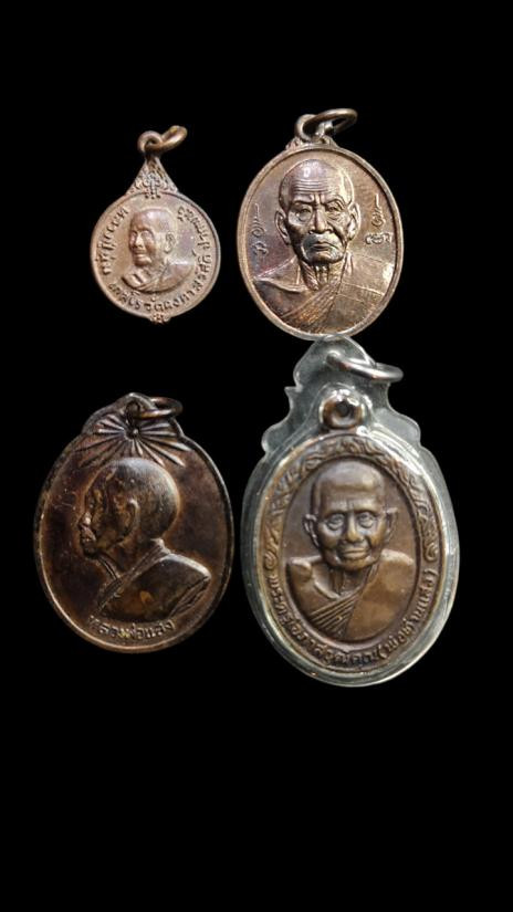**100.** (4เหรียญ) 2เหรียญหลวงพ่อท่านแสง วัดคลองน้ำเจ็ด จ.ตรัง+1เหรียญหลวงพ่อนุ่ม วัดคงคาสวัสดิ์ ปากพนัง ปี2522+1เหรียญพ่อท่านสมภารนอโม ที่ระลึกยกยอดพระบรมธาตุเจดีย์ วัดบ้านสวน จ.พัทลุง ปี 2539 |