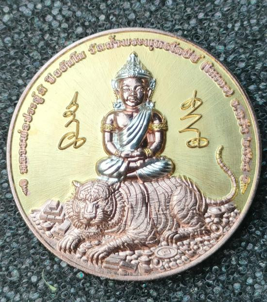 เหรียญ"พลิกดวงโครตราชันย์" หลวงพ่อประสูติ ปิยธัมโม วัดถ้ำพระพุทธโกษีย์(ในเตา) จ.ตรัง พิมพ์เทวดาน้อยเสือนอนกิน เนื้อชุบ3K หมายเลข ๑๘ พร้อมกล่อง เลขสวย สร้างแต่25เหรียญเท่านั้นคับ |