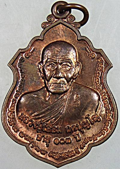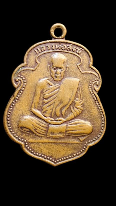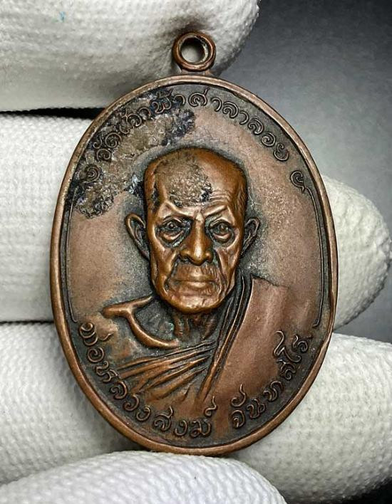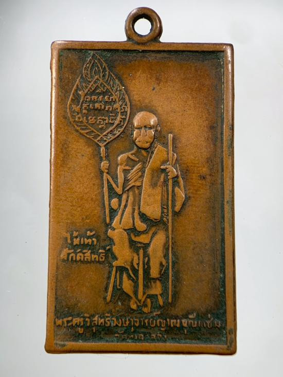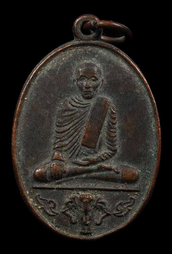 **100.** เหรียญหลวงพ่อสงฆ์ วัดเจ้าฟ้าศาลาลอย จ.ชุมพร ปี 2505 เนื้อทองแดง พิมพ์เข่าขีด ออกวัดเขากล้วย |
