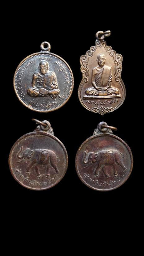 **100.** (พระชุมพร 4 เหรียญ) เหรียญหลวงพ่อสงฆ์ หลังปู่เจ้าฟ้า วัดเจ้าฟ้าศาลาลอย ปี 2520 + เหรียญหลวงพ่อมุม วัดนาสัก (ออกวัดสวนมณีทรัพย์) + 2 เหรียญพ่อตาหินช้าง ปี18 วัดเขาพ่อตา |