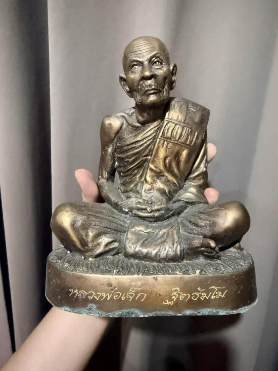 รูปหล่อลอยองค์ยืนถือไม้เท้าห้อยประคำหลวงพ่อคำ พร้อมเลี่ยมเลนส์อย่างดี เคาะเดียว |