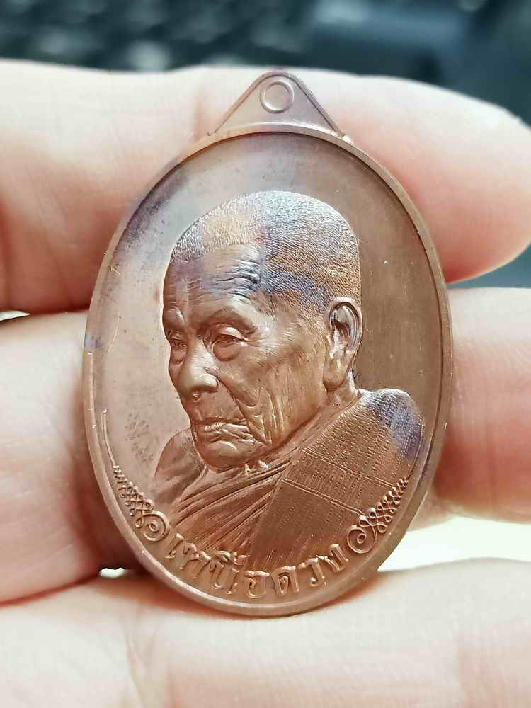 เคาะเดียวแดง....เหรียญรุ่นแรก พระอาจารย์ศรีเงิน วัดดอนศาลา จ.พัทลุง ปี 2541 เนื้อทองแดง ตอกโค๊ตสังฆาฏิ |