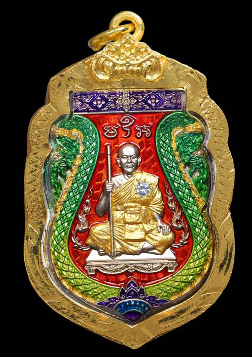 ..เหรียญ รุ่น ชนะมาร หลวงปู่อิ่ม ปัญญาวุโธ วัดทุ่งนาใหม่ จ.นครศรีธรรมราช เนื้อ 2 K ฝังเพชร ลงยาแดง (สร้าง 19 เหรียญ) No.777 พร้อมกล่องเดิมครับ |