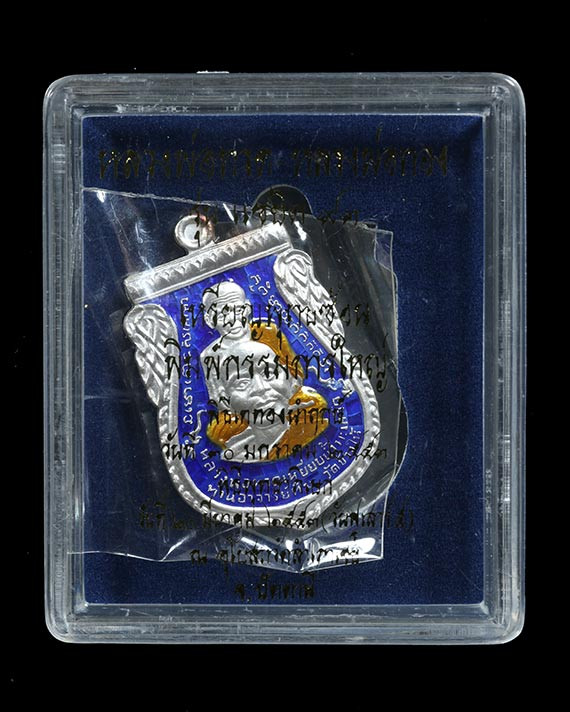 ..เหรียญ รุ่น ชนะมาร หลวงปู่อิ่ม ปัญญาวุโธ วัดทุ่งนาใหม่ จ.นครศรีธรรมราช เนื้อชุบเงินลงยาฟ้า ฝังเพชรสังฆาฏิ No.222 พร้อมกล่องเดิมครับ |