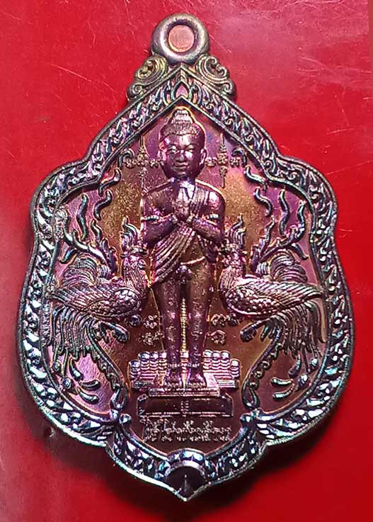 เหรียญพญาราหู พระอาจารย์ประสูติ วัดในเตา เหรียญเทพราหู เนื้อสัมฤทธิ์แดงกรรมการ ฝังเม็ดกริ่ง 4องค์ |