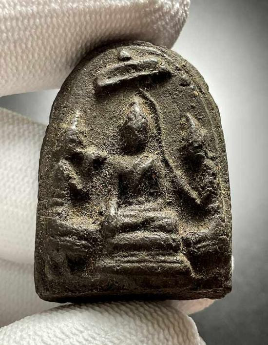 พระชัยวัฒน์ หลวงพ่อเหลือ พระครูกาชาด เนื้อทองผสม พิมพ์ฐานเตี้ย วัดดอนศาลา พ.ศ.2535 |