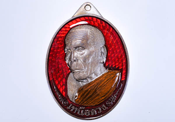 ของแรงแดนใต้ เหรียญบูชาครู เนื้อทองแดงผิวไฟ ลงยาอังสะ พื้นแดง ขอบน้ำเงิน ซุ้มเขียว พระอาจารย์ประสูติ วัดในเตา สวยมาก (---A94---) |