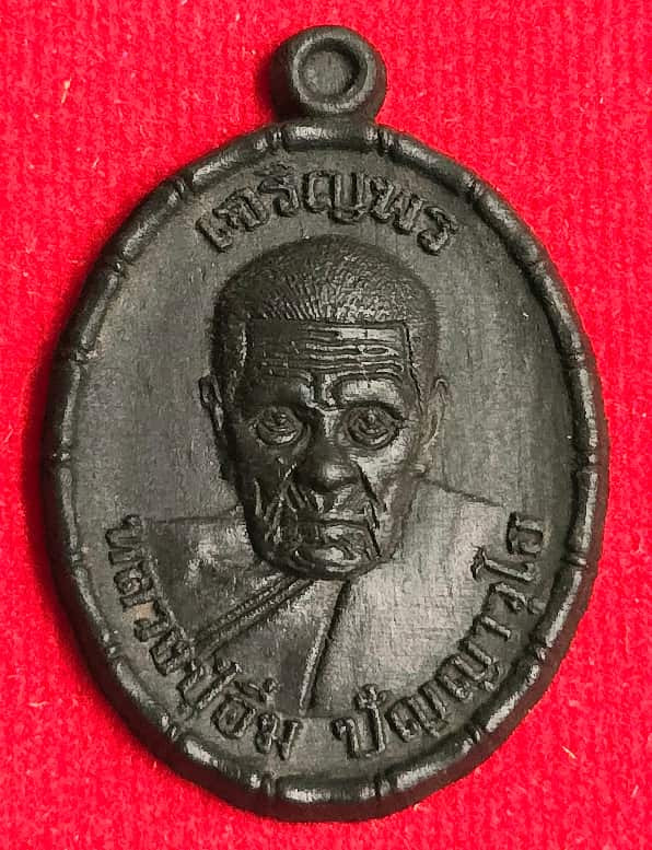 เหรียญ รุ่น"เจริญพร"ขอบปล้องอ้อย หลวงปู่อิ่ม ปัญญาวุโธ วัดทุ่งนาใหม่ นครศรีธรรมราช เนื้อไม้พญางิ้วดำ แกะสลักรูปหลวงปู่ หลังยันต์ สวยมาก หมายเลข ๖๑....พร้อมกล่อง |
