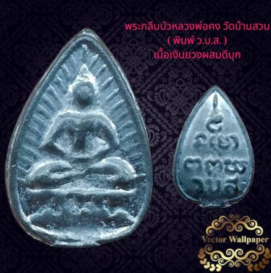 พระกลีบบัวหลวงพ่อคง พิมพ์ ว.บ.ส. วัดบ้านสวน เนื้อเงินยวงผสมดีบุก |