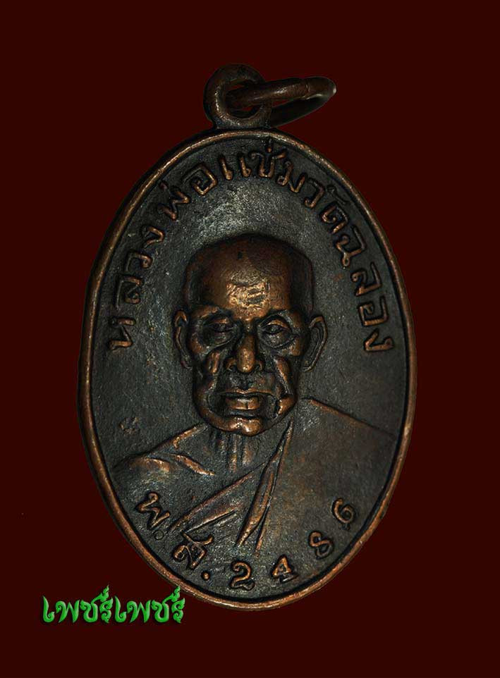 เหรียญหลวงพ่อแช่ม วัดฉลอง ปี 2487 หนังสือโค้ง ผิวไฟแดงๆ |