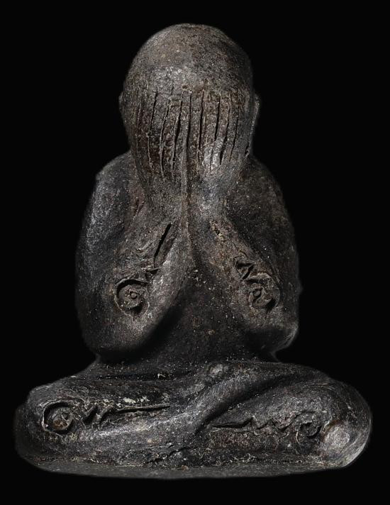 พระมหาว่านดำ อ.เอียด วัดดอนศาลา พ.ศ.2485 เนื้อโซนเทา กระเทาะด้านหลังล่าง |