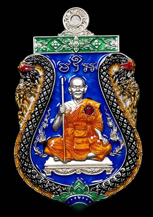 1 ใน 10 เหรียญเสมาพญาเสืออุดมทรัพย์ พระอาจารย์ประสูติ (หลวงพ่อประสูติ) วัดในเตา จ.ตรัง เนื้ออัลปาก้าลงยาน้ำเงินลงยาขอบพญานาคลงยาจีวร ตอกกรรมการ ฝังพลอยแดง เลขตองสวยๆNO.999(ที่สุดของเลขมงคล) |
