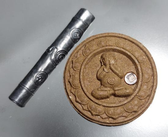 เหรียญตะกรุดไขว้ หลวงพ่อพาน วัดโป่งกะสัง ปี 2538 |