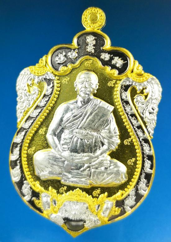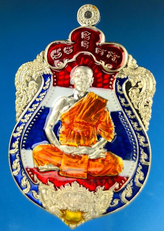 1 ใน 10 เหรียญเสมาพญาเสืออุดมทรัพย์ พระอาจารย์ประสูติ (หลวงพ่อประสูติ) วัดในเตา จ.ตรัง เนื้อเงินลงยาส้มฝังพลอยขาวเต็มสังฆาฏิจีวรทองลงขอบพญานาคบล็อคหลังเรียบเสือติดจีวรเกศาหนังเสือเพ้นท์เสือนอนกิน |